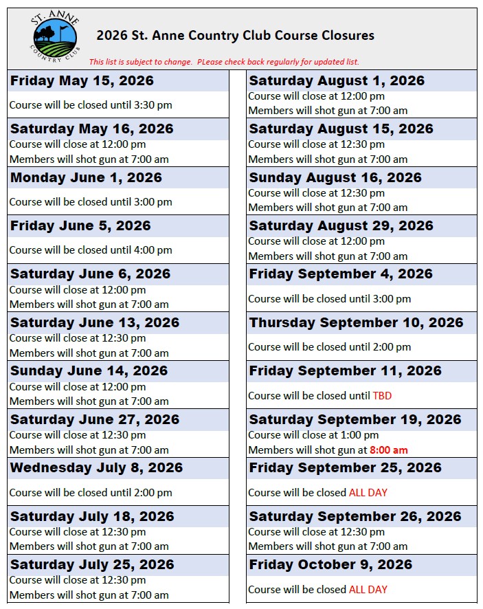 | The golf course is currently closed due to snow. If the snow melts the course will reopen. | |